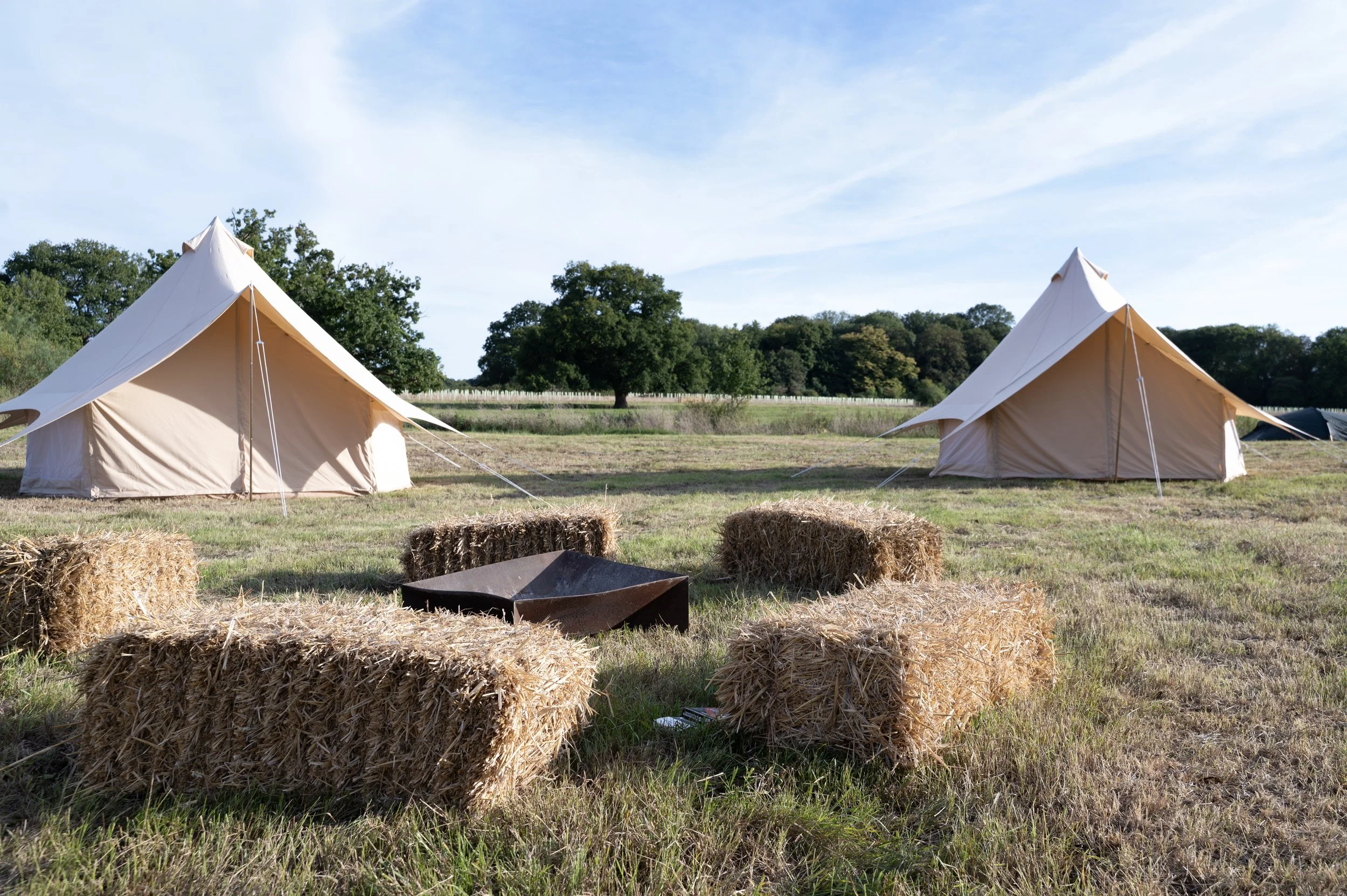 A magnificent ash tree stands as its’ memorial, providing dappled sunlight over your fire pits or lounge. Old WW2 Nissen huts sit proud to one side, providing essential logistics for your wedding.